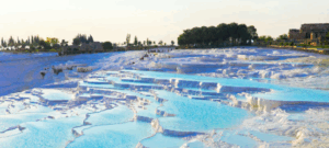 Pamukkale, meaning “cotton castle” in Turkish, is a natural wonder renowned for its surreal white terraces of travertine thermal pools. Visitors can soak in the mineral-rich waters while enjoying views of the surrounding countryside. Explore the ancient ruins of Hierapolis, an ancient Roman spa city located nearby, and learn about the history of this fascinating site. Pamukkale is a perfect blend of natural beauty and archaeological wonders.